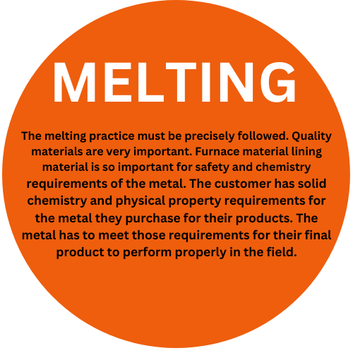 A foundry that has quality issues and needs assistance in delivering a better and more consistent product would benefit from our firm’s willingness to work through heat wave or frigid conditions in a hands-on approach to get your foundry on the right track. The quality of metal your foundry produces will suffer if the melted scrap poured from your furnace is incorrect or incompatible with your sand, mold, or core. Here our 4 elements to casting that have to be done right, and the consequences of failing to meet compatible standards: