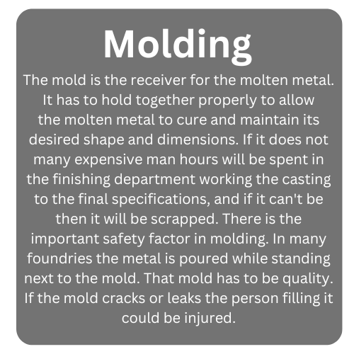 Our firm can provide you with expert analysis on the foundry process control of your operation. Purchasing the best, most compatible compliment of sand, mold, core, and scrap metal, is a waste if you struggle at any point during the process control in your foundry.